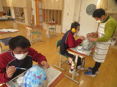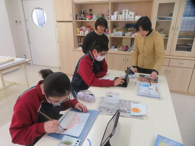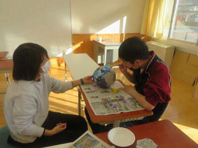 テーマに沿ってどのように表すかを工夫しながら取り組んでいます。表現方法は自由、ワクワクしながら取り組んでいます。