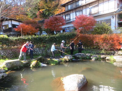 1・2年生の校外学習で「あづま養魚場」へ電車に乗って出掛けました。少々冷え込みはありましたが、みんなの表情からはワクワク感が伝わってきました。僕が、私が一番に釣るよと意気込んでいたのですが、なかなかあたりがなく時間が経過。自然が相手ですからそこは我慢も必要。そうはいっても我慢も限界になったところで養魚場の計らいで別の池へ案内していただき、見事全員が釣り上げることができました。釣ったニジマスは塩焼きかフライのどちらかを選択しおいしくいただきました。