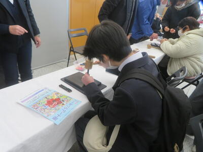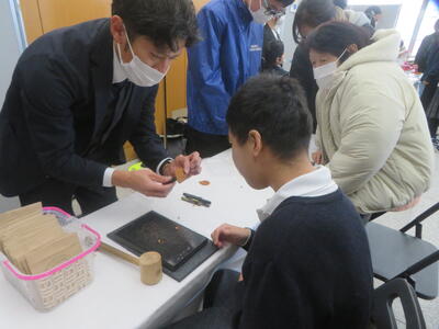さらに隣接する会場でのワークショップにも興味を示し他校が実施するブースで革細工体験を楽しむことができました。