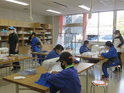 2月3日と4日に、中学部の作業学習(縫製)に参加しました。2学期に中学部の作業学習に参加したときは、中学部の授業に不安を感じ、少々戸惑う様子が見られました。しかし今回は、興味のある縫製ということや、中学部とのかかわりに慣れてきたことなどもあり、意欲的に参加することができました。ミシンを使うのは初めてでしたが、使い方を覚えると、手際よく縫製する様子が見られました。児童からは、「楽しかった。」「またやりたい。」など、前向きな言葉が聞かれ、中学部への進学に向けた、有意義な時間となりました。