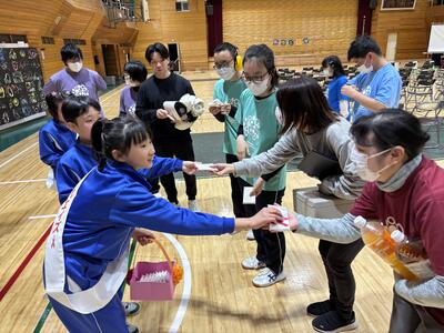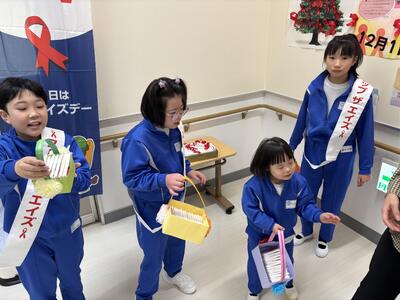 11月8日に行われた「あがとく祭」での小学部児童の様子を紹介します。小学部の企画では、スタンプラリーを実施しました。お客さんがスタンプを押して、本校キャラクターの「あがちゃん、とっくん」の絵を完成すると、小学部の景品交換所に持ってきてくれます。児童達は絵を確認し、手作りのしおりを手渡すことができました。しおりも児童達が一生懸命に作りました。また、レッドリボン運動でもお客さんにティッシュを手渡し、啓発活動を頑張りました。ステージ発表以外でも、みんな生き生きとたくさん頑張っていました。