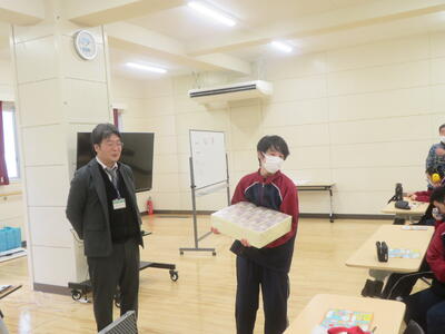 12月12日(金)に1・2年生でファミリーマート東吾妻原町店に出掛けました。前回に引き続き、電車を利用して行ってきました。券売機を操作し、自分で切符を買うことができました。改札を通るときも切符を見せたり、切符回収箱に切符を入れたりすることができました。ファミリーマートでは、自分で食べたいものを選び、レジで支払いをすることができました。学校に帰ってから、みんなでおいしく食べることができました。