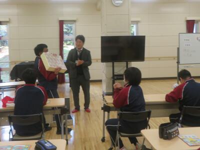 政治への関心を高めることを目的に、群馬県議の秋山健太郎議員、斉藤優議員が来校し、政治の仕組みについてスライドを用いて解説していただきました。難しい内容でもあるのでクイズを交えることで生徒も頷いたり、笑顔を見せたりと興味をもって説明を聞いている様子が見られました。