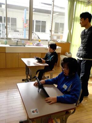 また、クイズを始める前には、iPadを使う時の姿勢について養護教諭から声かけを行い、正しい姿勢を意識して取り組む姿も多く見られるようになってきています。