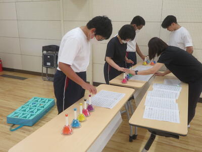 2学期は歌唱の他に合奏にも取り組みます。希望する楽器を選び、まずは各パートに分かれて始めて見ました。この取り組みの成果を11月に行われる「あがとく祭」で披露する予定です。互いに協力し励まし合いながら