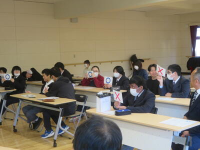 そのやりとりがとても温かく、生徒も積極的に質問することができました。生徒の感想として「政治のこと、選挙のことを身近に考えていこうと思った」「選挙権をもっているので次の選挙は行こうと思った」などがあげられました。