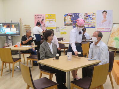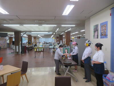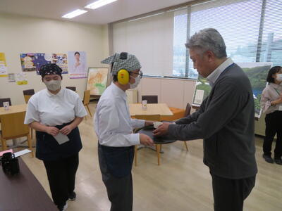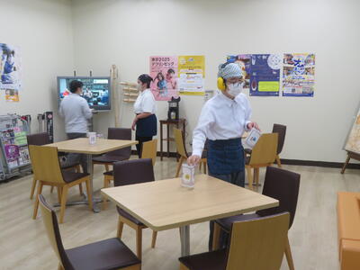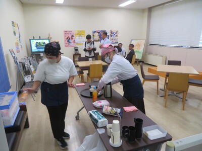 来月実施される「あがとく祭」では喫茶店「あがとくカフェ」を行う予定です。普段の学習の成果を確認するために中之条町役場にご協力いただき、10月14日(火)に役場庁舎内において生徒3名が接客を行い、無料で飲み物の提供をしました。