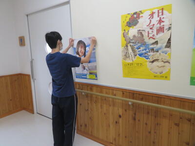 月に1回程度、各委員会での活動を実施しており、先日の活動日には本部役員会は群馬県の特別支援学校作業製品のブランド化に係る統一ロゴマークの愛称について意見を出し合いました。保健委員会では来月におこなわれる「あがとく祭」において来場者に普段の活動を知ってもらおうと、活動紹介ポスターの作成をしました。広報委員会では美術館や博物館の特別展開催案内、他の特別支援学校の文化祭開催案内といった各種のポスターを掲示しました。