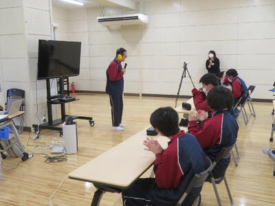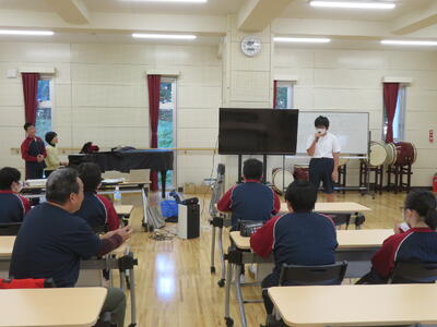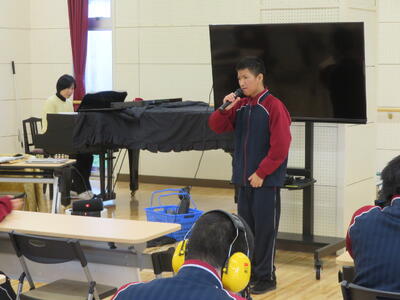 「みんなで歌おう」と題して、声の大きさや発音などを意識しながら取り組んでいます。先日の「あがとく祭」において全校で歌った「この星に生まれて」の冒頭の部分を1人ずつ順に歌ってみました。照れながらも