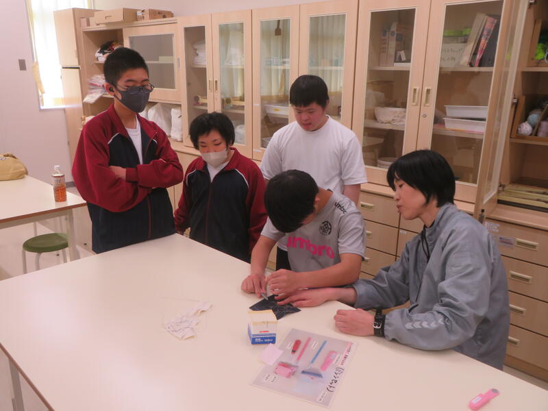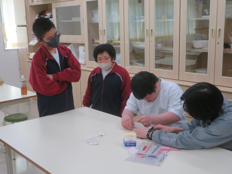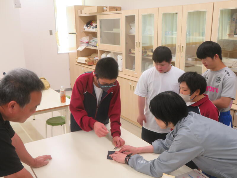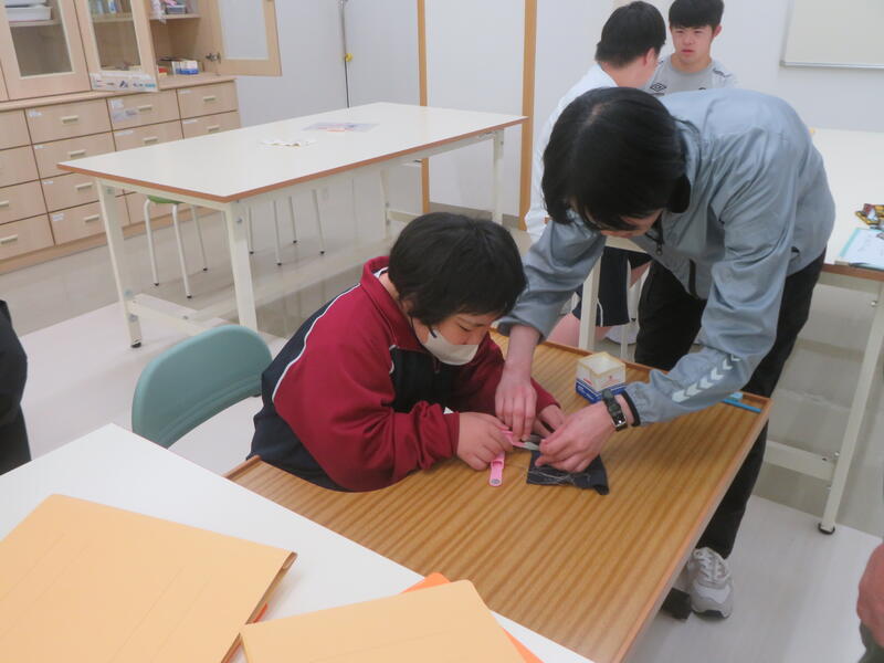 高等部 作業学習 投稿日時 : 04/20 群馬県立吾妻特別支援学校Webページ管理者 カテゴリ:高等部 1年生は作業学習においてまずは各種の作業を体験してみます。今回は縫製作業で基本的な道具の取り扱い等に取り組んでみました。教師の説明、示範に注目し、ハサミを用いてやってみました。ドキドキしながらもやる気十分で、それぞれ「できた!」と達成感で満たされていました。また、友達が上手くできた際もそれぞれが同じように喜ぶ姿が印象的でした。 Tweet {{options.likeCount}} {{options.likeCount}}